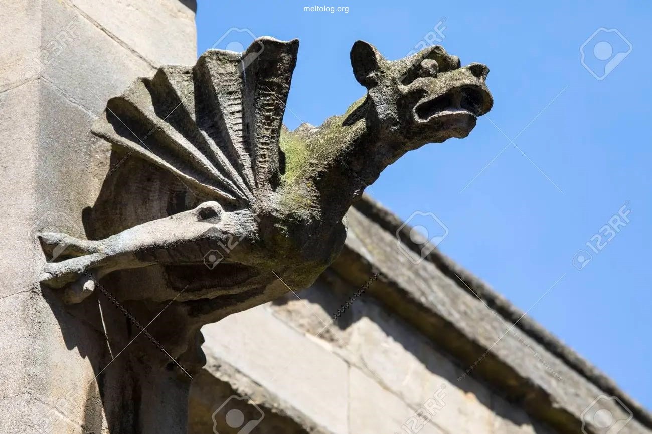 More old world water cooling spouts all different shapes and sizes I’m certain were not for rain it didn’t exist back in the old world only vapour did and if we look at the old cisterns which are used for churches too could have been distributing water to cool the components