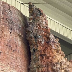 Some amazing melting going on here check out what happened to the bricks all cooked out turning them pale grey