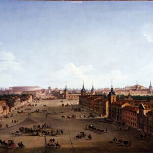 A mixture of amazing old world buildings, vehicles transport etc