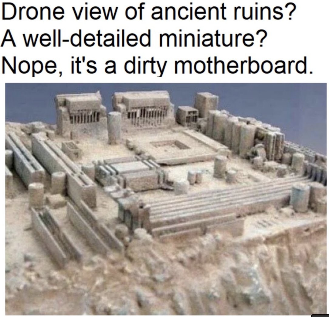 Memes and check out that dusty motherboard