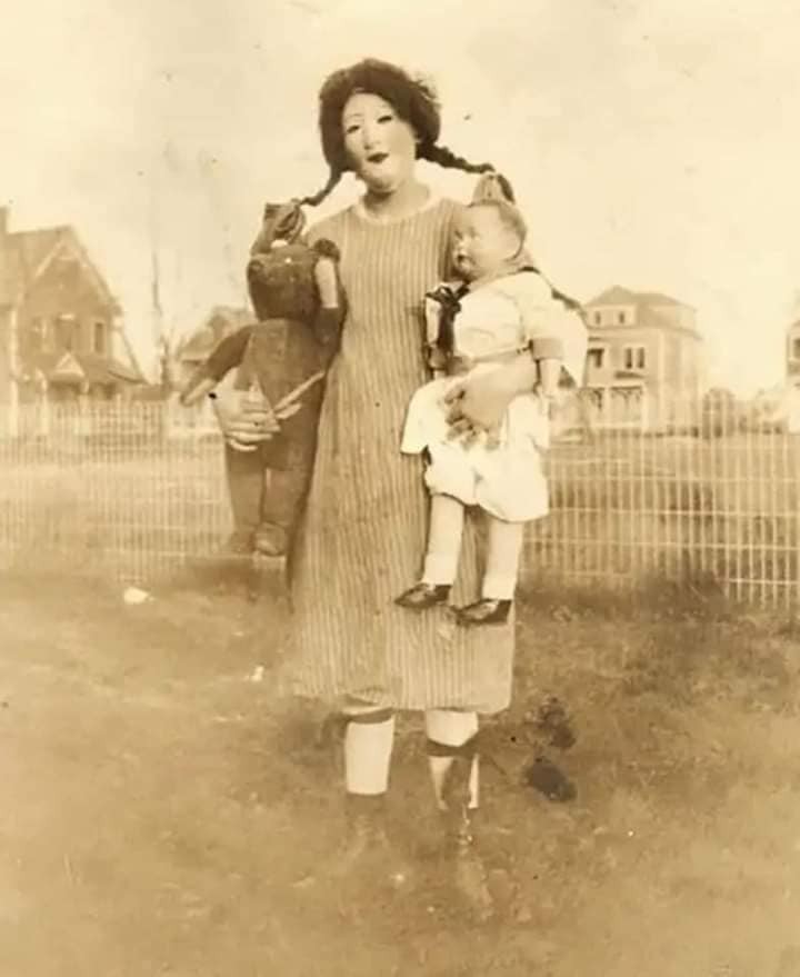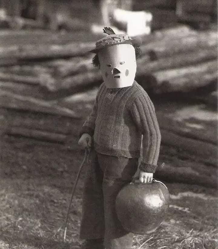 More old world Halloween remember folks this is before the hollywood horror movies so this must have been scary for them whatever this was meant o be could have been some kind of sacrifices who knows?
