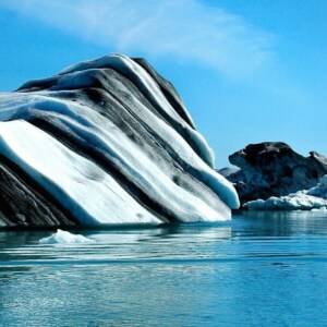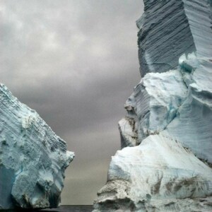 A couple of very cool photos check out the one with the huge drop off into the ocean this must have been a huge structure before it melted the other is a statue from the old world beneath the ocean flood waters